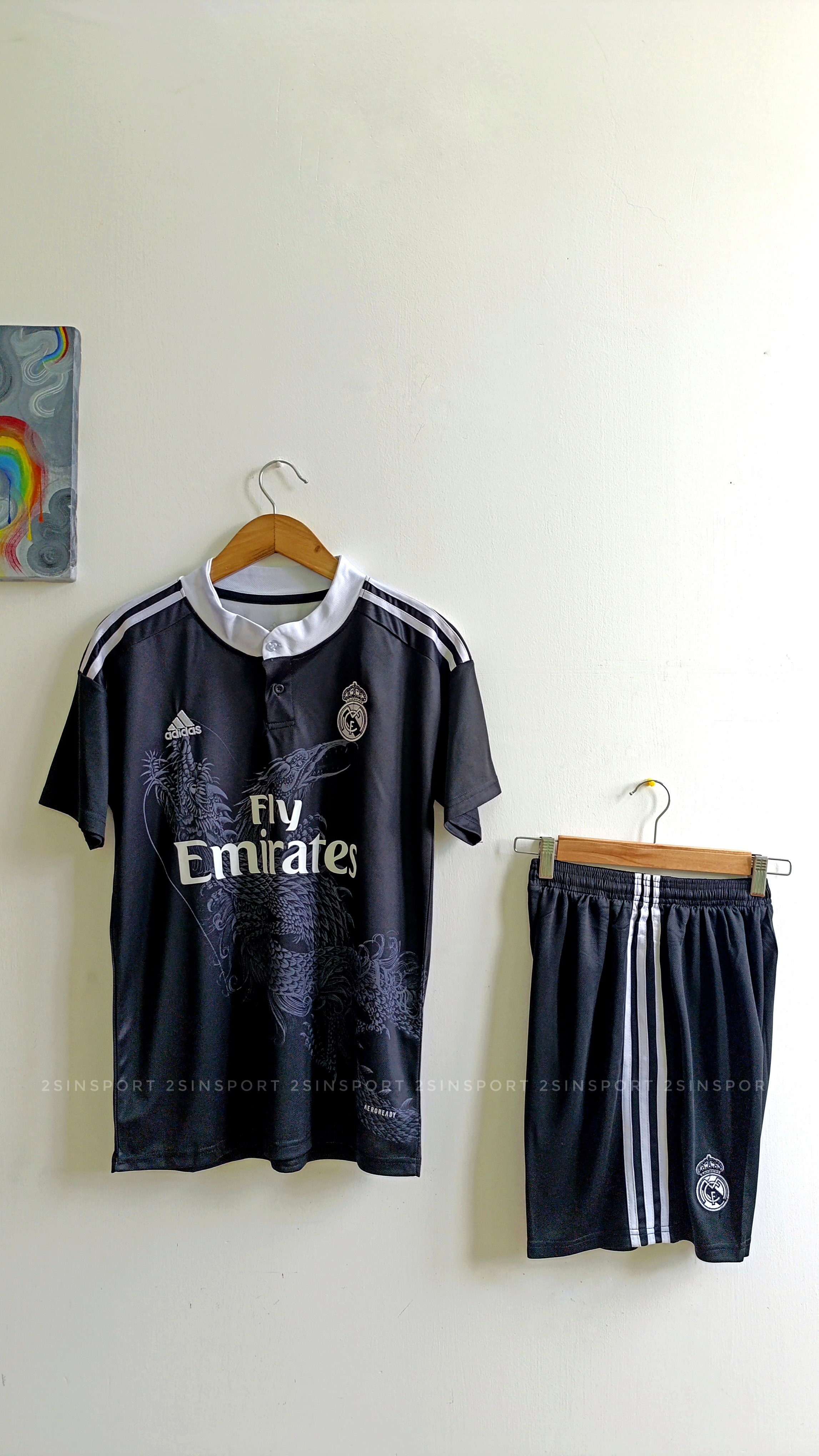 کیت کلاسیک رئال مادرید دراگون مشکی 15-2014. کیت اورجینال تایلندی ورژن هواداری.لوگو و علائم روی کار همه دوخت هستند. دارای شناسنامه آدیداس.🥇ارسال از طریق پست پیشتاز با پاکت حباب دار. جنس پارچه A+++ بهترین کیفیت موجود در بازار. کیت های هواداری قابلیت چاپ اسم, شماره و خوشحالی گل بازیکن به همراه امضا را دارد. جنس چاپ کرهای بهترین کیفیت موجود در بازار است.